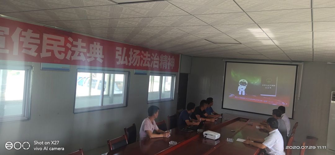 全体项目部管理人员及现场施工班组长参加了宣贯会议,会议上对《民法典》的学习要求进行宣贯及解读。会上,参会人员共同学习了新民法。以投影仪投放及微信转发的形式进行了系统的学习,通过这次集体学习提高了项目部全体人员的法治意识。