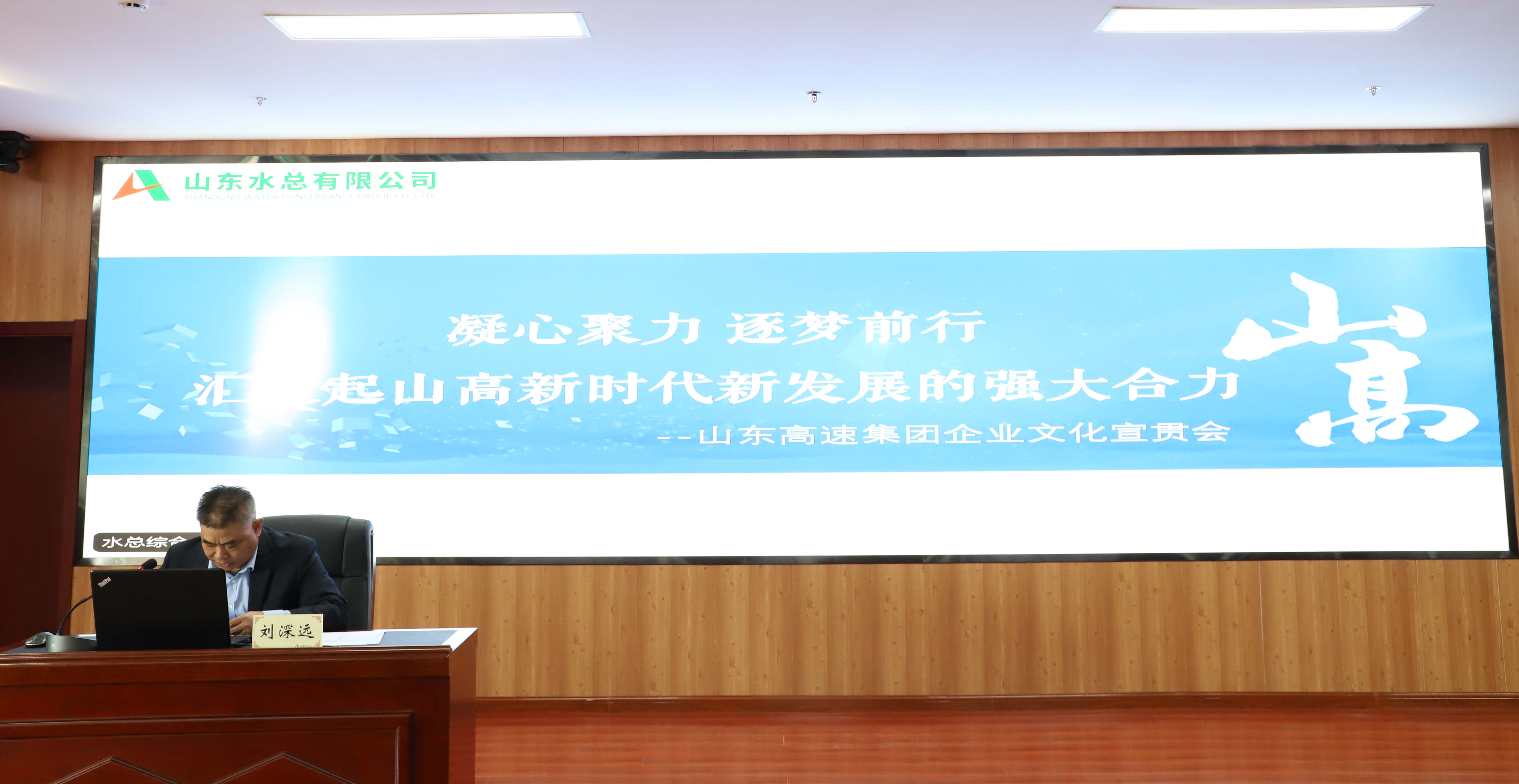 12月3日,公司在二楼会议室组织召开山东高速集团企业文化宣贯会《凝心聚力 逐梦前行,汇聚起山高新时代新发展的强大合力》。党委书记、董事长刘深远等领导班子出席会议,公司总部各部室员工在主会场参加会议,各权属单位、各项目部通过视频方式参加会议,参会人数500余人。党委委员、副总经理袁英杰主持会议并讲话。