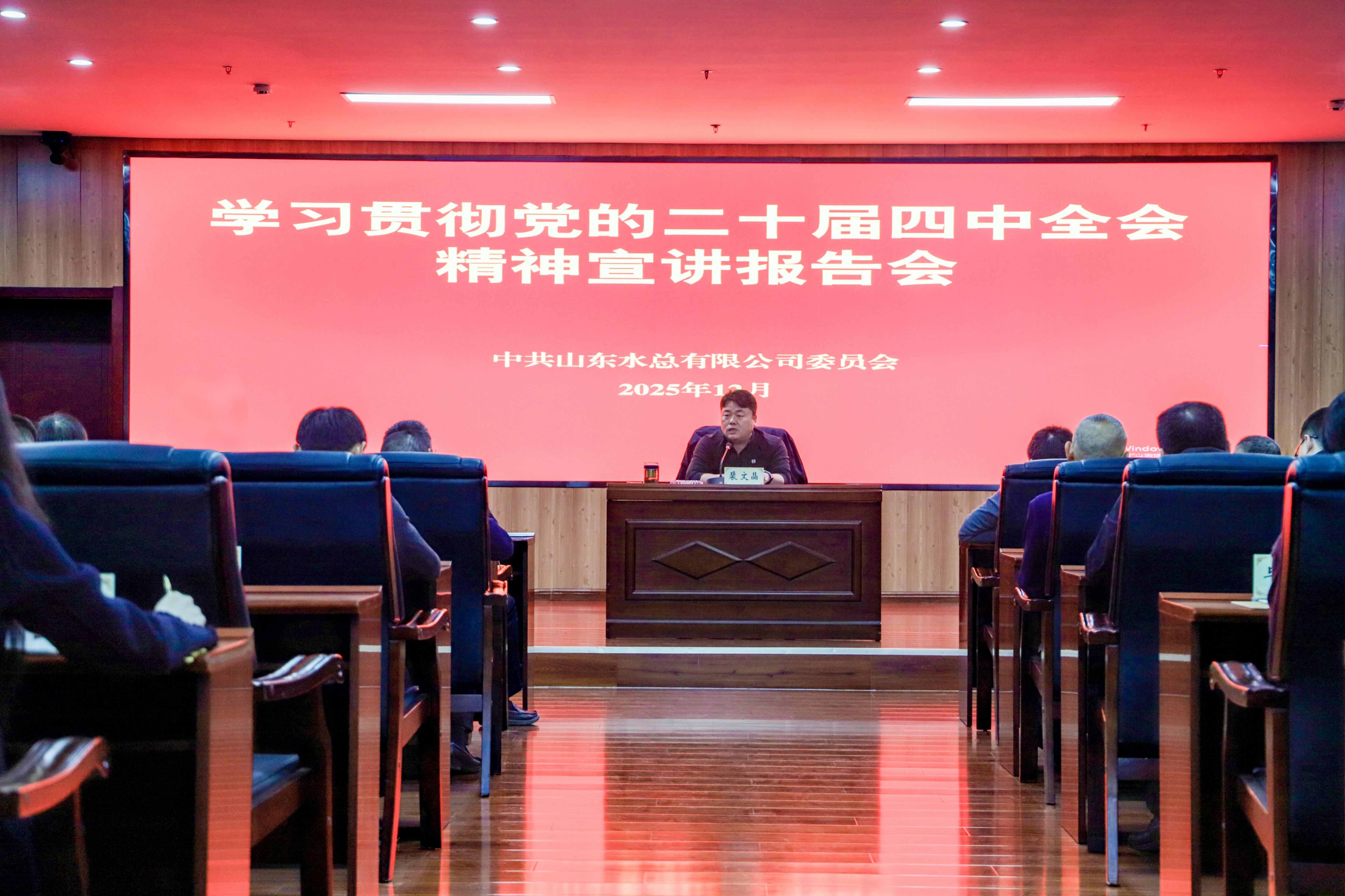 为积极落实集团党委安排部署,推动党的二十届四中全会精神在公司落地生根,切实把思想和行动统一到党中央决策部署上来,12月10日,公司党委举行党的二十届四中全会精神宣讲报告会。集团公司党的二十届四中全会精神宣讲团成员,公司党委书记、董事长裴文晶同志作宣讲报告,公司党委副书记、工会主席王坤林同志主持。