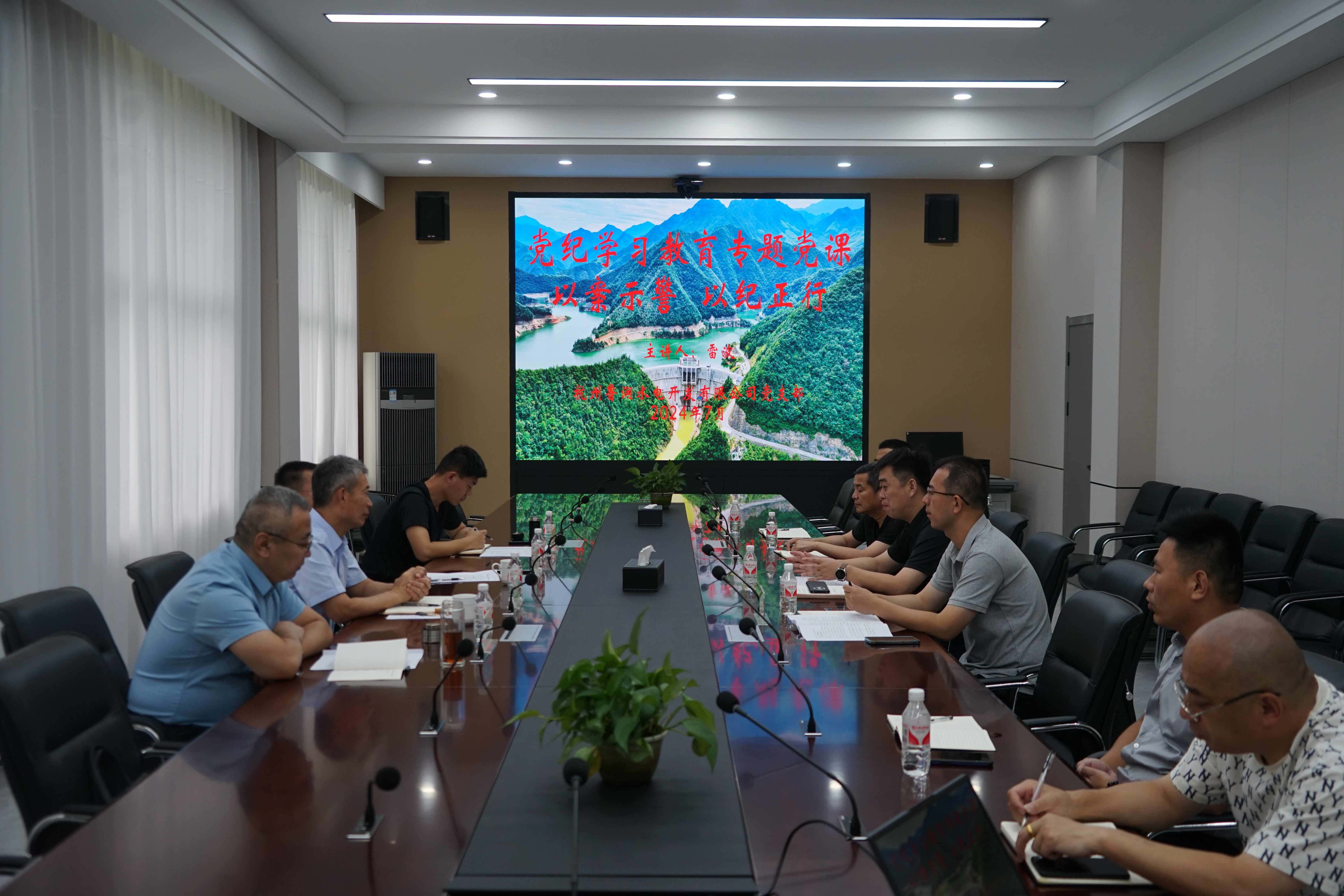 活动中,公司领导代表水总工会为双溪口水库一线职工送来防暑降温慰问品,将水总的关心和清凉沁入职工心里。随后开展了调研活动,深入了解杭州鲁润公司的党建群团工作、生产经营状况。王坤林指出,一要充分发挥杭州鲁润公司在浙江地区桥头堡作用,深耕市场,扩大业务板块;二要切实发挥党建引领作用,做到党建与业务互融互促双提高;三要继续强化宣传工作,聚焦双溪口水库建设经验、水利运营版块扩展等方面,擦亮“水总品牌”。随后,雷波以“以案示警 以纪正行”为题给党员干部讲授纪律党课。